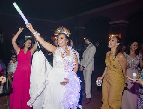 La celebración fue en la Hacienda Tierrablanca, en Salteras. Los invitados disfrutaron del cocktail en sus jardines contemplando la puesta de sol y los primeros minutos de la noche. El banquete fue en el interior en uno de los amplios salones que dispone la hacienda. La fiesta tuvo lugar en un patio sevillano en el que los invitados dieron todo y acompañaron a Almudena y Javier en uno de los días más importantes de sus vidas.